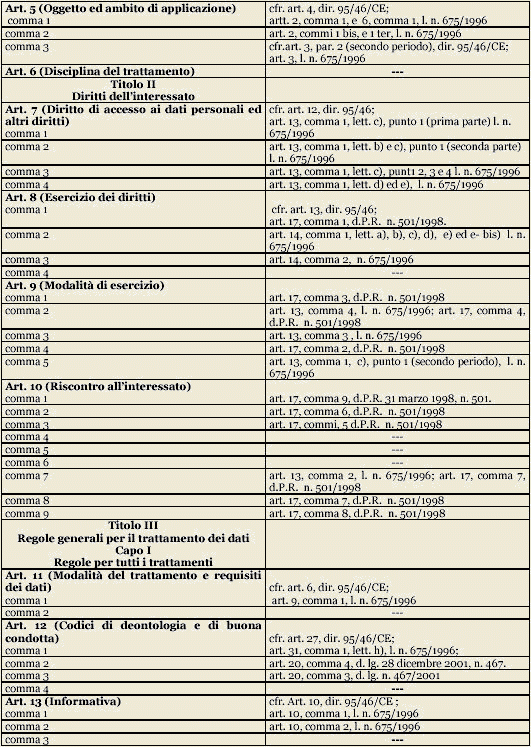 TAVOLA DI CORRISPONDENZA DEI RIFERIMENTI PREVIGENTI AL CODICE IN MATERIA DI PROTEZIONE DEI DATI PERSONALI